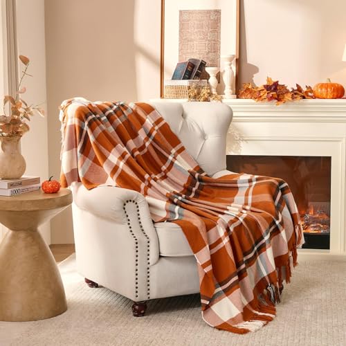 Lanpn Rust Plaid Throw Blanket Cozy Soft Fall Fringe Blanket...