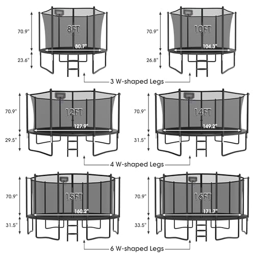 JELENS Trampoline 8FT 10FT 12FT 14FT 16FT Recreational Tramp...
