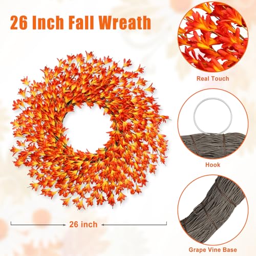 6 FT Fall Garland with Lights Timer Function Fall Leaves Garland with Berries Pine Cones Realistic Autumn Automatic ON/Off Timer Fall Decorations for Home Mantle Fireplace Porch Table