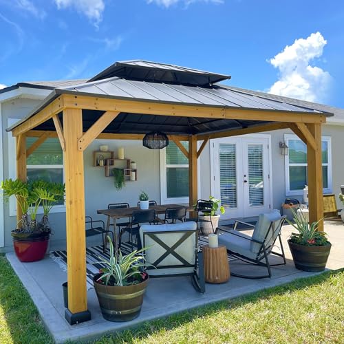 Yardenaler 12x14 FT Wooden Pergola Cedar Wood Gazebo with Ar...