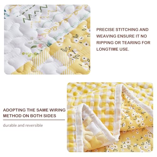 Joyreap 3 Pieces Floral Patchwork Quilt Set Queen Yellow n W...