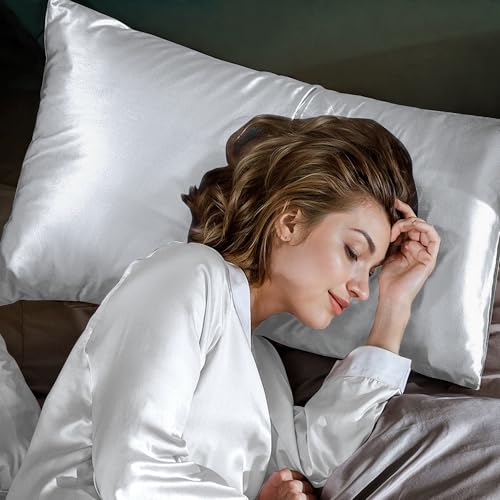 Satin Pillowcase for Hair and Skin Silk Pillow Cases Silvery...