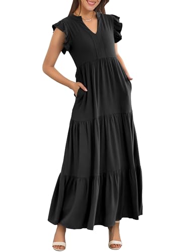 ANRABESS Womens Summer Casual Maxi Dress V Neck Ruffle Sleev...