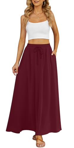 Yincro Women's Flowy Maxi Skirt Summer Pleated High Waisted ...