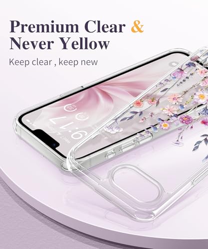 GVIEWIN for iPhone 17 Case with Screen Protector+Camera Lens Protector [NonYellowing] Clear Floral Slim Shockproof Protective Hard PC Back Women Phone Case for iPhone 17 6.3"" Aquilegia/White