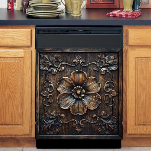 Vintage Wooden Floral Dishwasher Magnet Cover Flower Carved ...