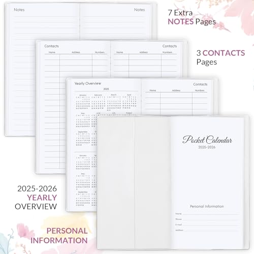 KONVINIT Pocket Calendar 2025-2026 Floral Monthly Planner 20...