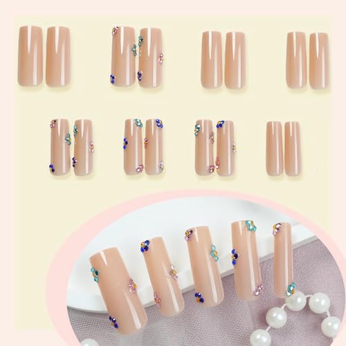 Product Description: Product Name:Square press on nails Color: As the pictures shows Quantity: 48 pcs/box How to use: 1.Gently rub the nail slices with a nail stick to remove the surface cuticles rinse off and keep the nails clean and dry. 2.Choose the size that best suits your nails taking an appropriate amount jelly glue on the inside of the selected nail plate. 3.Press the false nails on your own nails and hold them for 30 seconds. 4.Trim according to the shape and length of the press on nail you want. How to remove: Soak your nails in warm water and gently peel off the pre glued nails from the side after a few minutes. Remove the glue sticker and keep the fake nail tip for next time use. Considerations: Please do not leave the acrylic nails in water for a long time it will make the nails fall off easily. Keep away from water for 3 hour after applying fake nails. You can use