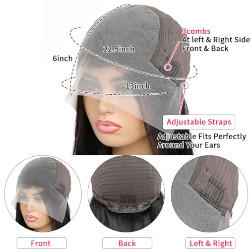 Hidden Strap 360 Full Lace Front Wigs Human Hair Invisible Strap Pre Plucked Bleached Konts Pre Cut Lace Deep Wave HD Lace Frontal Wig with Drawstring Burgundy Wig Human Hair 360 Glueless Wigs(18inch)