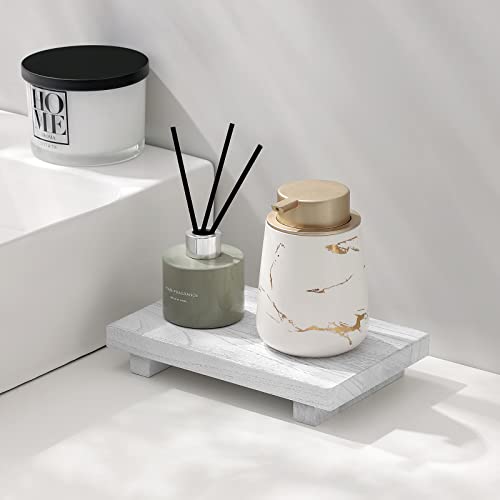 Small Wood Tray Pedestal Stand Farmhouse Bathroom Decor Deco...