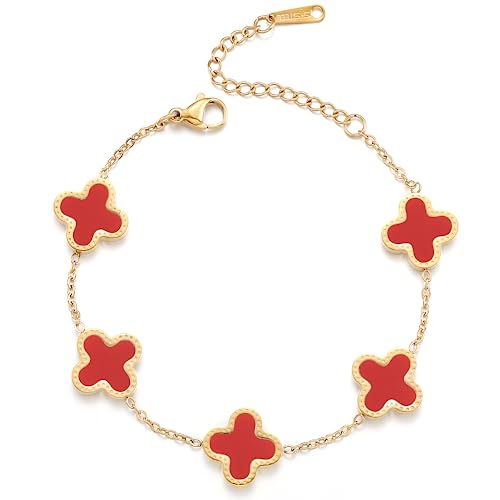TICVRSS 18K Gold Plated Clover Bracelet for Women Adjustable...