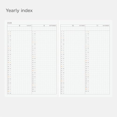 You may notice press marks slight whitening or a glossy finish on the corners of the front and back covers. These are unavoidable results of the binding process. Color may transfer to other items through friction or prolonged contact. This risk increases when the cover is exposed to water or sweat so please take extra care when carrying it near clothing or other belongings. The Tomoe River paper designed for planners is known for its thinness and smooth writing surface. However depending on the type and amount of ink or pen used—as well as environmental conditions—some ink may bleed through or take longer to dry. We recommend testing your pens on an inconspicuous area first or using a pencil board or blotting paper for best results.