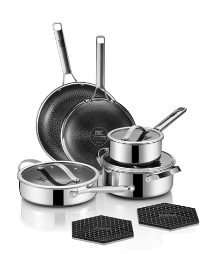 Pots and Pans Set Hybrid Stainless Steel 10PC Nonstick Tri-P...