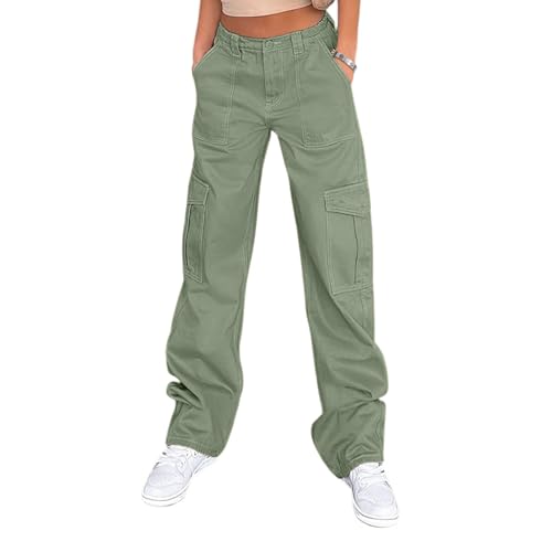 Women High Waisted Cargo Pants Wide Leg Casual Pants 6 Pocke...