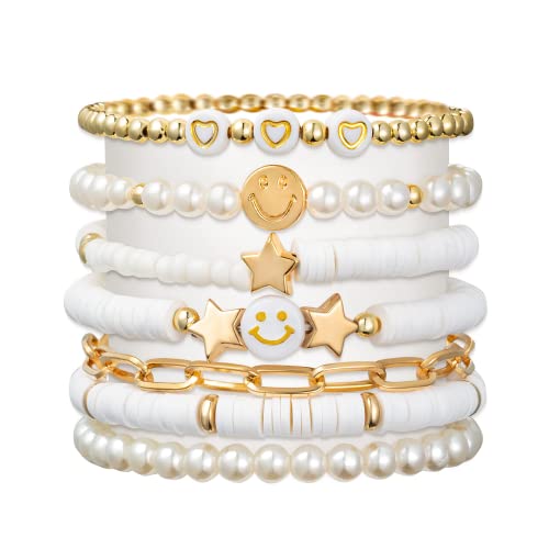 YALASOBA Preppy Bracelets Set Colorful White Gold Smile Hear...