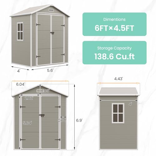 UDPATIO Outdoor Storage Shed 6x4.5 FT Plastic Resin Outside ...