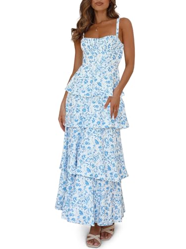 Fisoew Womens Floral Maxi Dresses Spaghetti Strap Casual Sle...