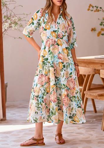 Bluetime Women Summer Boho Dress Floral V Neck Loose Fit Dre...