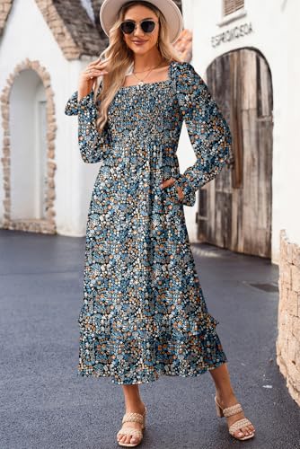 Dokotoo Wedding Guest Dresses for Women Boho Floral Long Sle...