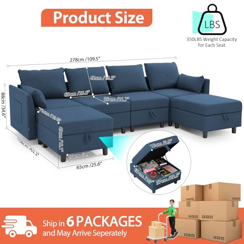 SEJOV Modular Sectional Sofa with Storage Convertible 6 Seat...