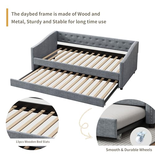 FAVSH Twin Size Upholstered Daybed with Trundle Tufted Sofa ...