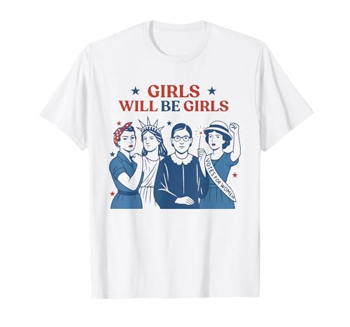 Girl Will be Girls Patriotic Feminist 4th of July Womens T-S...