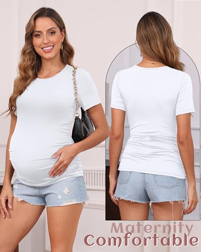 Huukeay 4 Pack Women's Maternity Shirts Crew Neck Maternity ...