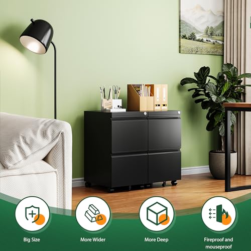 Letaya Mobile File Cabinet with Lock 2 Drawer Under Desk Met...