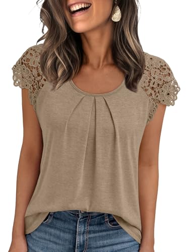 AUTOMET Womens Short Sleeve Shirts Dressy Pleated Blouse Lac...