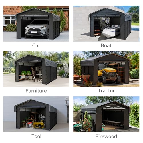 Shintenchi Carport 12' x 20' Heavy Duty Portable Garage Car Port Canopy with Side-Opening Removable Door & Roll-Up Windows Car Canopy for Truck Car Boat Motorcycle Grey