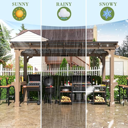 MUPATER 6 x 13 FT Wooden Grill Gazebo with Sloping Metal roo...