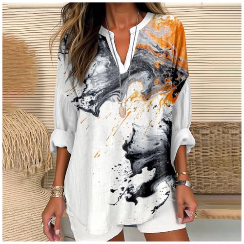 MARSVOVO Abstract Marble Print Plus Size Tops for Women Rela...