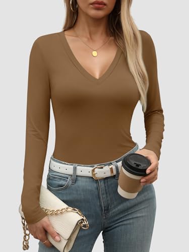 ATHMILE Womens Fall Deep V Neck Long Sleeve Shirts Modal Sli...