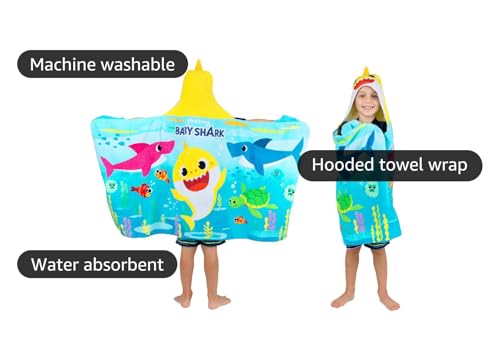 Baby Shark Bath/Pool/Beach Soft Cotton Terry Hooded Towel Wrap 24 in x 50 in By Franco Kids