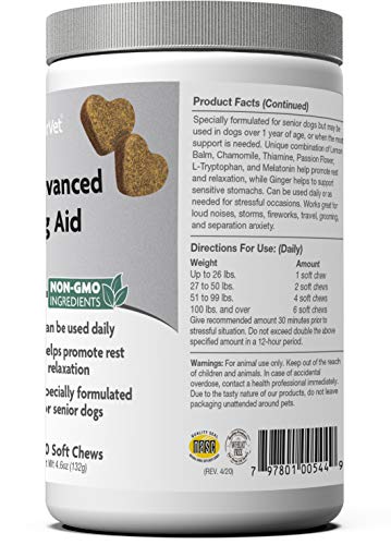 NaturVet Quiet Moments Calming Aid Dog Supplement Helps Promote Relaxation Reduce Stress Storm Anxiety Motion Sickness for Senior Dogs – 60-Ct. Soft Chews