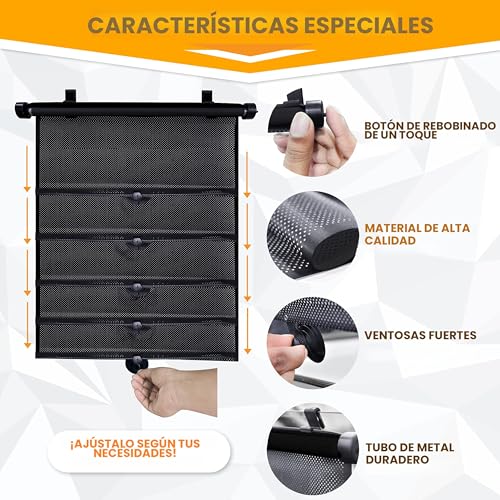 EcoNour Car Side Window Sun Shade (2 Pack) | Retractable Roller Sunshade with 2 Suction Cups for Kids | UV & Sun Glare Protection | Baby Car Accessories (15\"x17\")