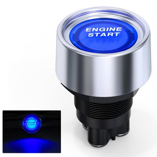 Nilight Start Engine Button 12V DC 50A SPST on Off Momentary Switch Blue Car Start Engine Button Stater Push Start Ignition Switch for Racing Sport Cars Trucks