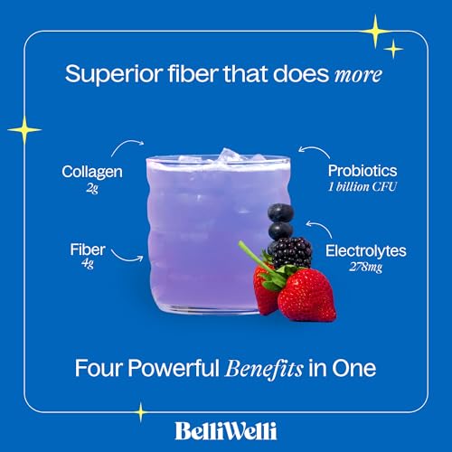 Belli Welli Daily Fiber Supplement Powder with Collagen Probiotics & Electrolytes | Supports Digestive Health Gut Balance & Debloating | Wild Berry | 16 Servings