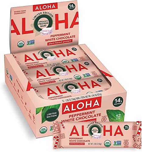 ALOHA Organic Plant Based Protein Bars Peppermint White Chocolate 1.98-Ounce Bars (Pack of 12)
