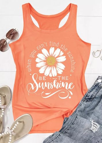 CHUNTIANRAN Womens Tank Tops Summer Casual Loose-Fit Racerback T Shirt Sunshine Floral Graphic Sleeveless Shirt Boho Beach Tops Cami(Small Sunshine Orange 4)