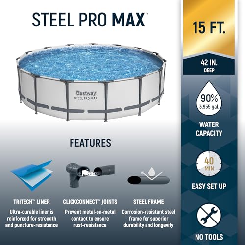 Bestway 5617WE Pro MAX Above Ground 15ft x 42in | Steel Frame Round Pool Set | Includes All You Need 15' x 42\" Stone