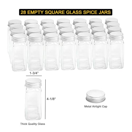 4 Tier Spice Rack Organizer with 28 Spice Jars 386 Spice Labels Chalk Marker and Funnel Set for Cabinet Countertop Pantry Cupboard or Door & Wall Mount
