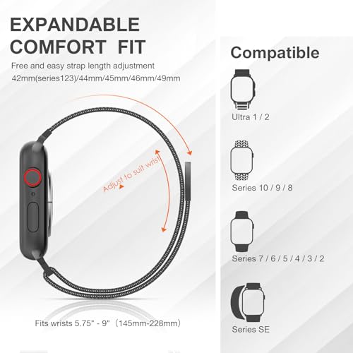 MARGE PLUS Stainless Steel Band for 42mm 44mm 45mm 49mm 38mm 40mm 41mm men and women Magnetic Clasp Replacement (black 42mm/44mm/45mm/49mm)