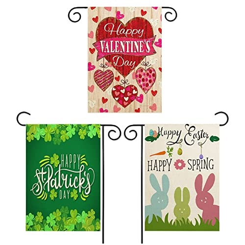 Valentine Day Garden Flag St Patricks Day Garden Flag Easter Garden Flags 3 Pack Outdoor Decorations for Seasonal Home Yard Spring