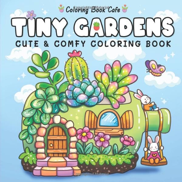 Tiny Gardens: Cute & Comfy Coloring Book for Adults and Teens Featuring Adorable Garden Scenes