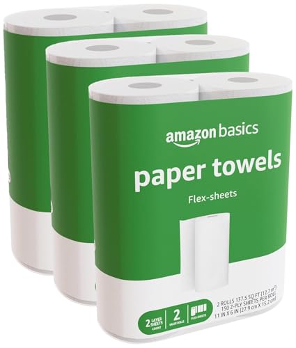 Amazon Basics 2-Ply Flex-Sheets Paper Towels 6 Basics Rolls = 16 Regular Rolls Everyday Value with 150 Sheets per Roll