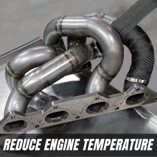 2\" x 50' Black Exhaust Heat Wrap Roll for Motorcycle Fiberglass Heat Shield Tape with Stainless Ties