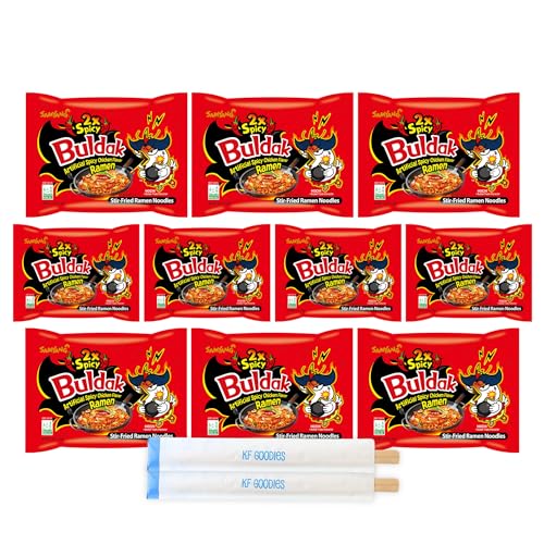 KF GOODIES Samyang Buldak Hot Spicy Chicken Ramen Noodle Korean Stir-Fried Ramen X2 Spicy Flavor 5 Pack for Each Flavor (10 2X Spicy)