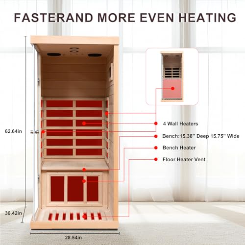LTCCDSS Far Infrared Sauna Room Home Sauna for 1 Person Dry Saunas with 1060W Indoor Sauna 1 Bluetooth Speakers 1 LED Reading Lamp Hemlock Wood Sauna Room Right Door
