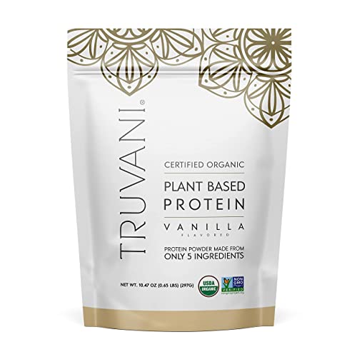 Truvani Organic Vegan Protein Powder Vanilla - 20g of Plant Based Protein Pea Protein for Women and Men Non GMO Gluten Free Dairy Free (10 Servings)